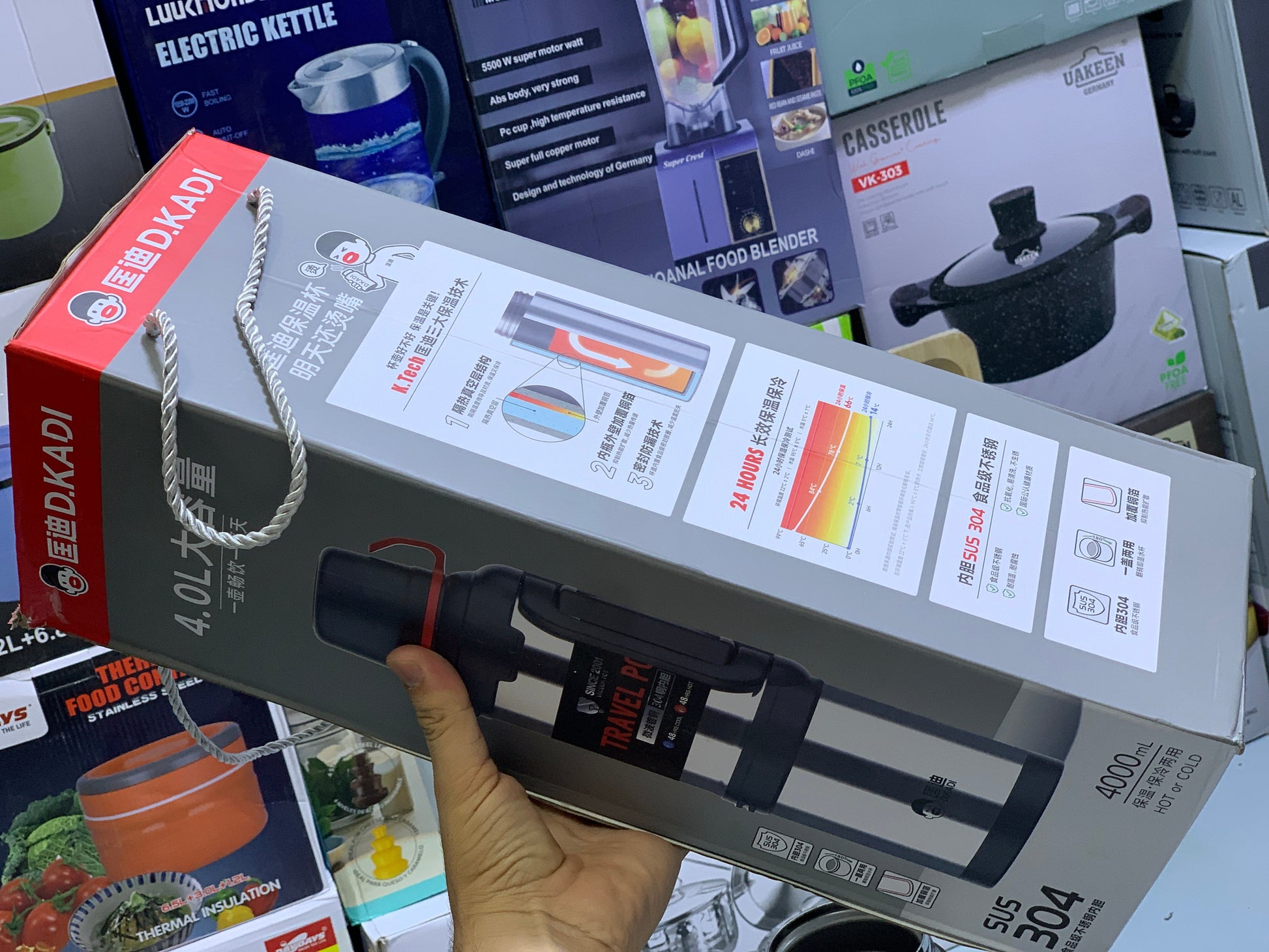 D Kadi Travel Pot Water Bottle 4000ml Stainless Steel SUS 304 Hot and Cool 24 hours