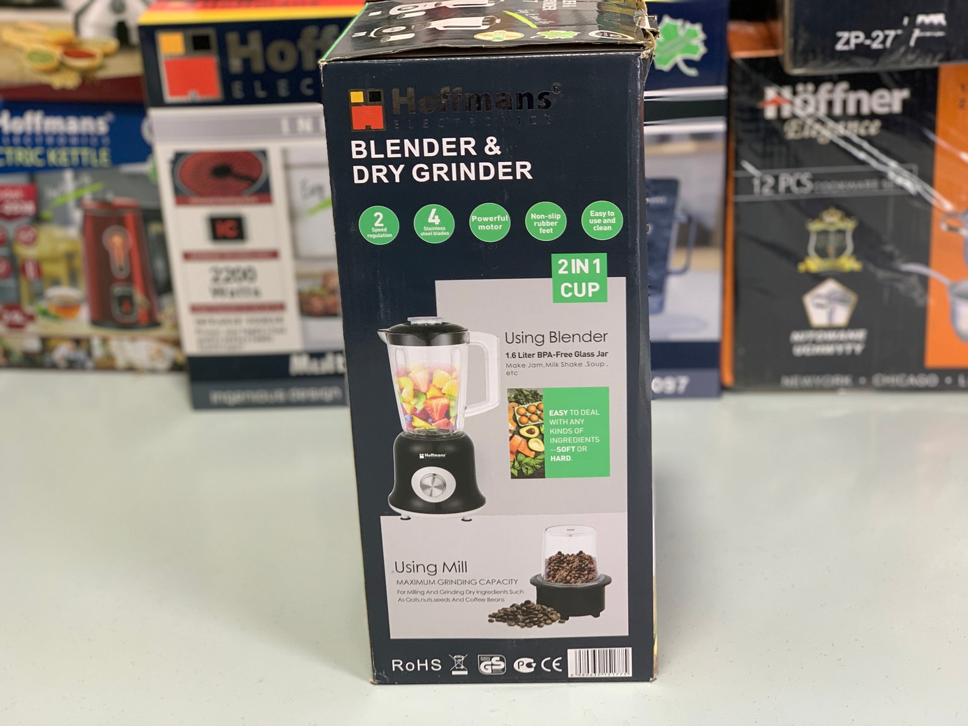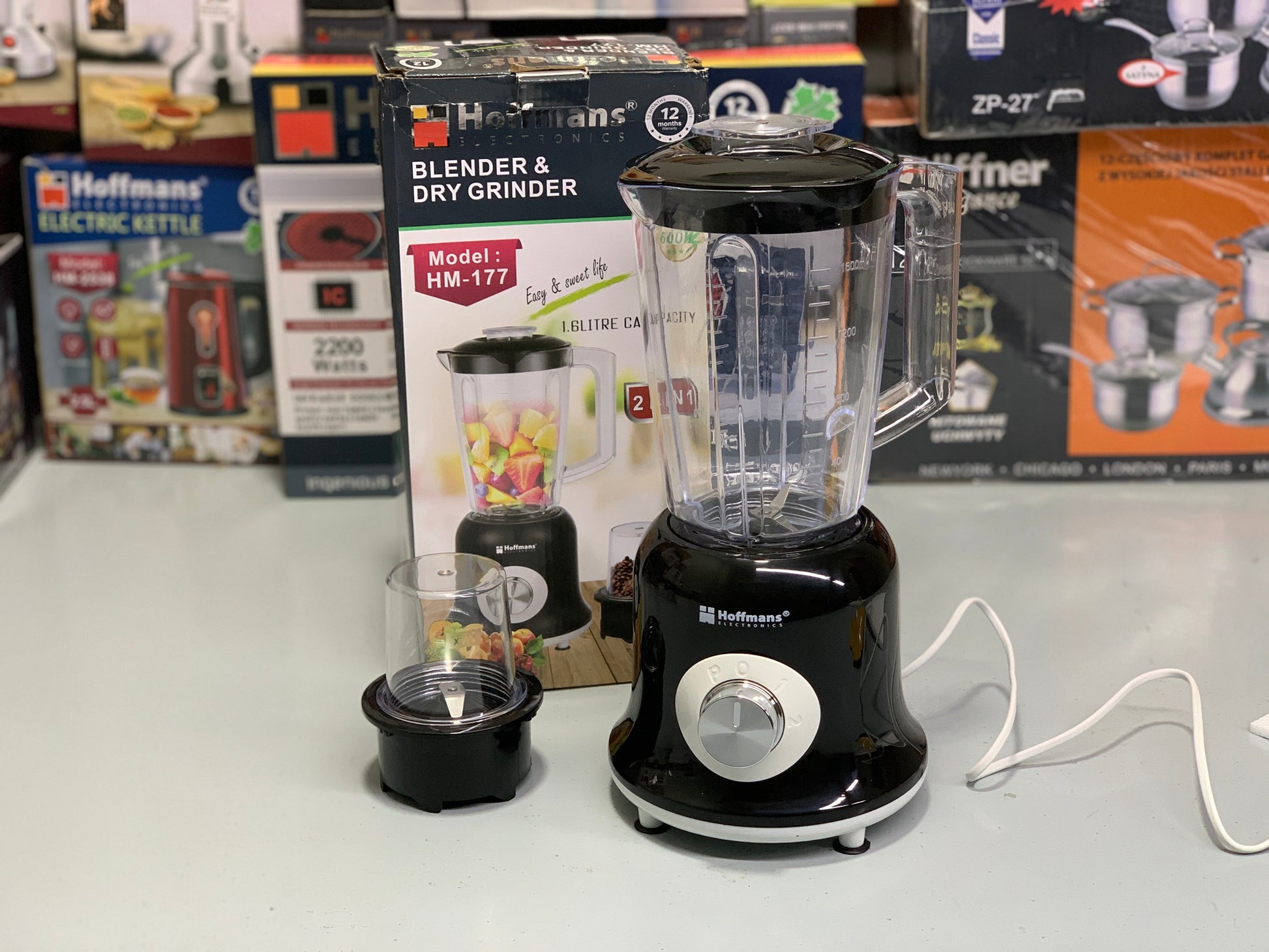 Hoffmans Electronics 2 in 1 Blender and Grinder 1.6 Unbreakable Jug Stainless Steel Blades