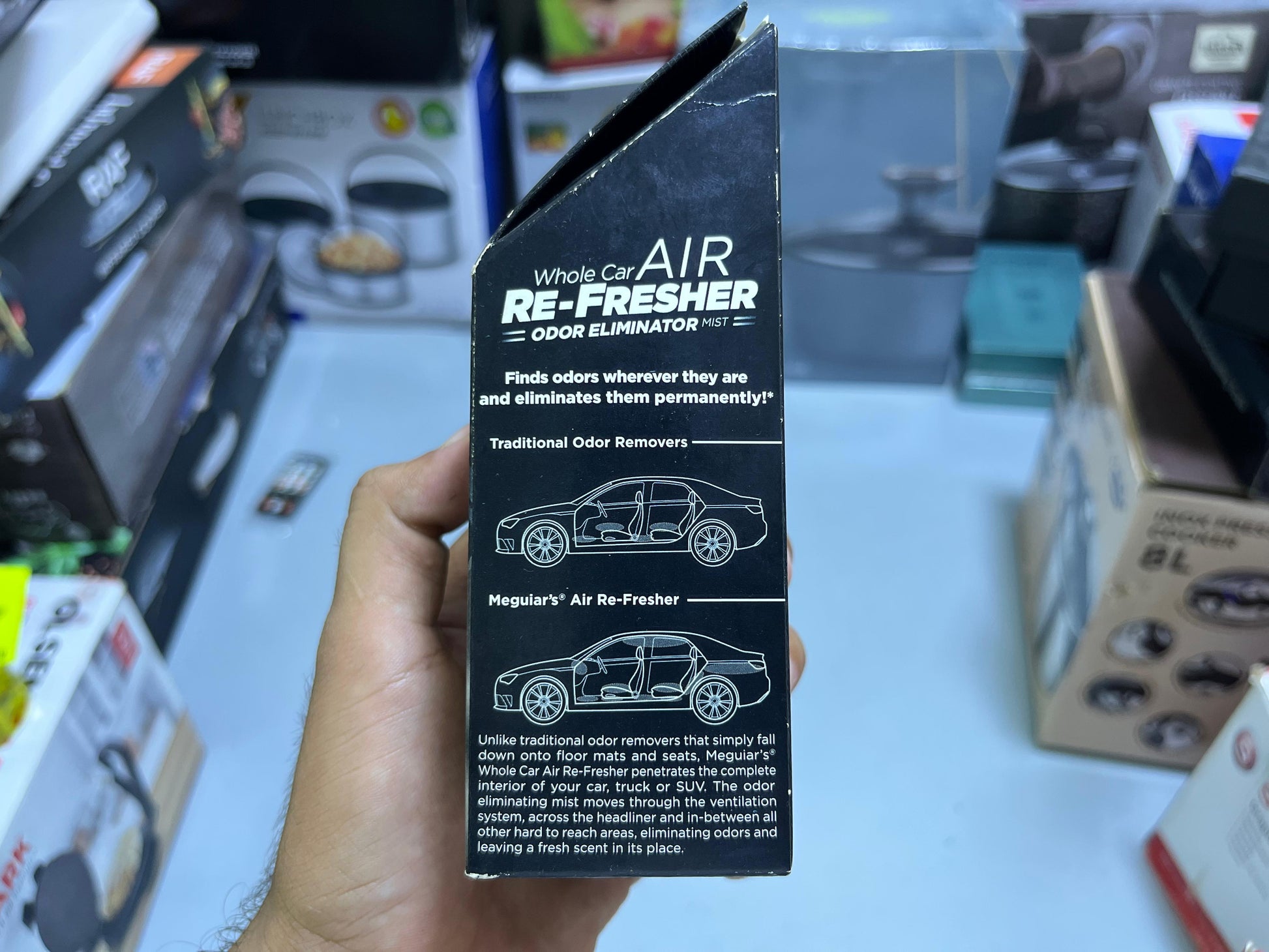Application: Released into the car’s ventilation system, the mist penetrates every nook and cranny, across the headliner, and into hard-to-reach areas to eradicate unpleasant smells and leave a refreshing fragrance behind